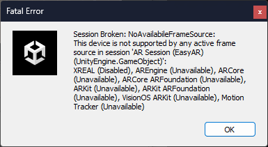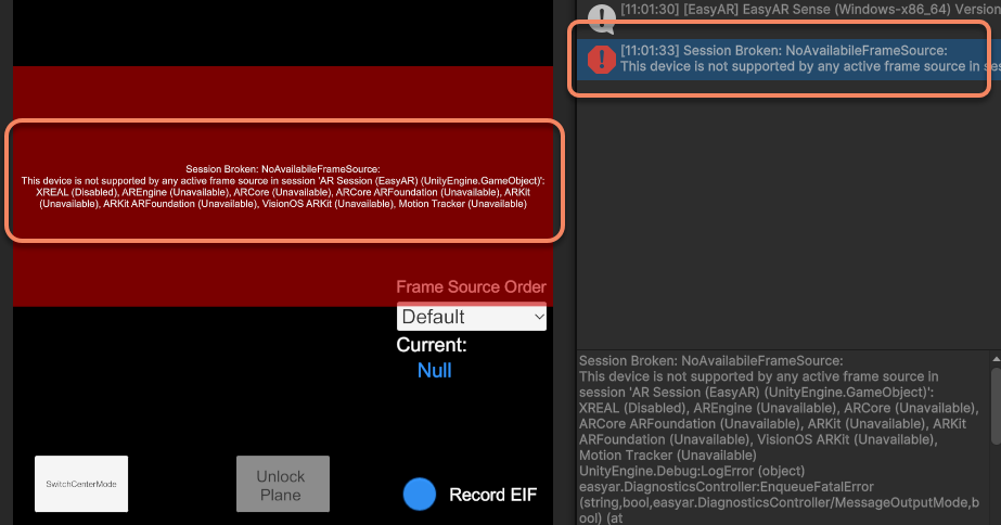 Some features cannot be run in the editor by connecting to the camera but can be run on a mobile device. Examples that cannot be used in the editor will display a pop-up window indicating startup failure.