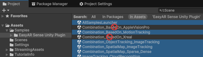 **All Samples** and other samples cannot be imported simultaneously, as this may result in duplicate assets and cause some scene resources to be lost. If duplicate files are accidentally imported, delete them and re-import.