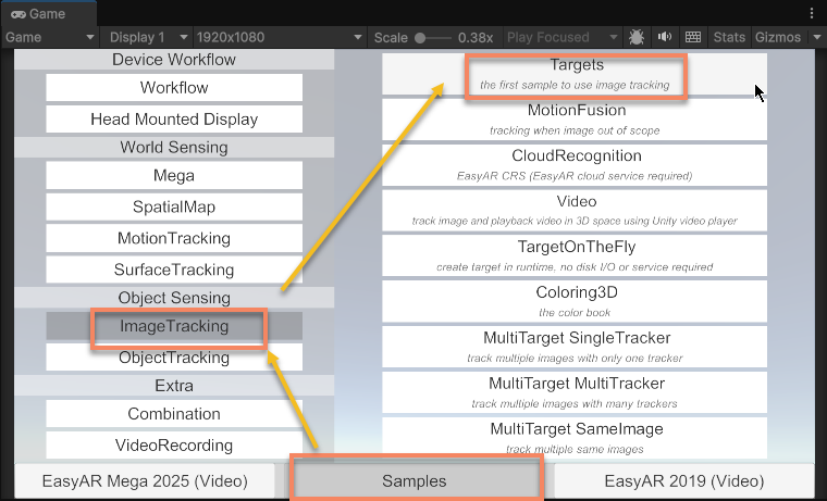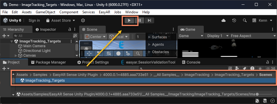 ImageTracking_Targetsas an example. Other examples can be run in a similar way.