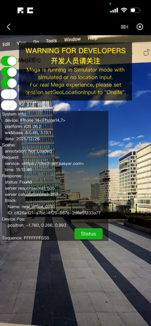 This chapter explains how to quickly verify whether the positioning service and positioning library are configured successfully. Through the WeChat Mini Program or native App provided by Mega Toolbox, you can quickly verify the positioning service is working properly on-site or via photos (off-site), making it easier to preliminarily troubleshoot configuration and data issues.