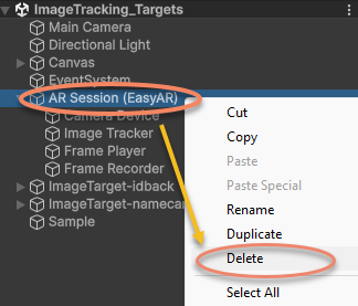 Delete the AR Session in the scene: